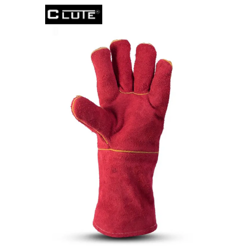 Guante de soldador fabricado en 100% cuero descarne rojo con forro de 1.0 mm – 1.2 mm